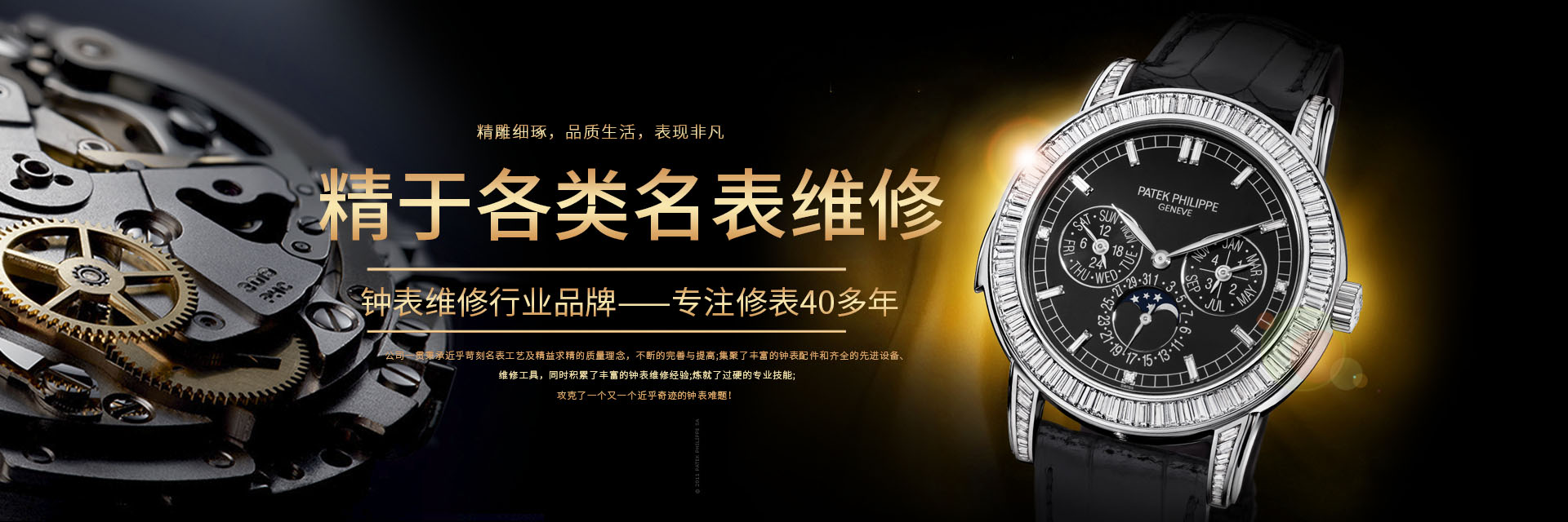 貴陽(yáng)唐鉆師貿(mào)易有限公司是一家專(zhuān)業(yè)從事世界各品牌手表維修、維護(hù)的專(zhuān)業(yè)公司,公司法人唐虎一直專(zhuān)注于世界名表維修,維修經(jīng)歷四十余年。 為不斷提高服務(wù)水平,公司十分注重維修人員技能的提高,公司所有的維修師傅都經(jīng)過(guò)品牌培訓(xùn)以及鐘表協(xié)會(huì)認(rèn)證,他們掌握的先進(jìn)核心技術(shù)為維修服務(wù)提供了切實(shí)的保障。用精湛的修理技術(shù),高品質(zhì)的維修質(zhì)量,熱情.....